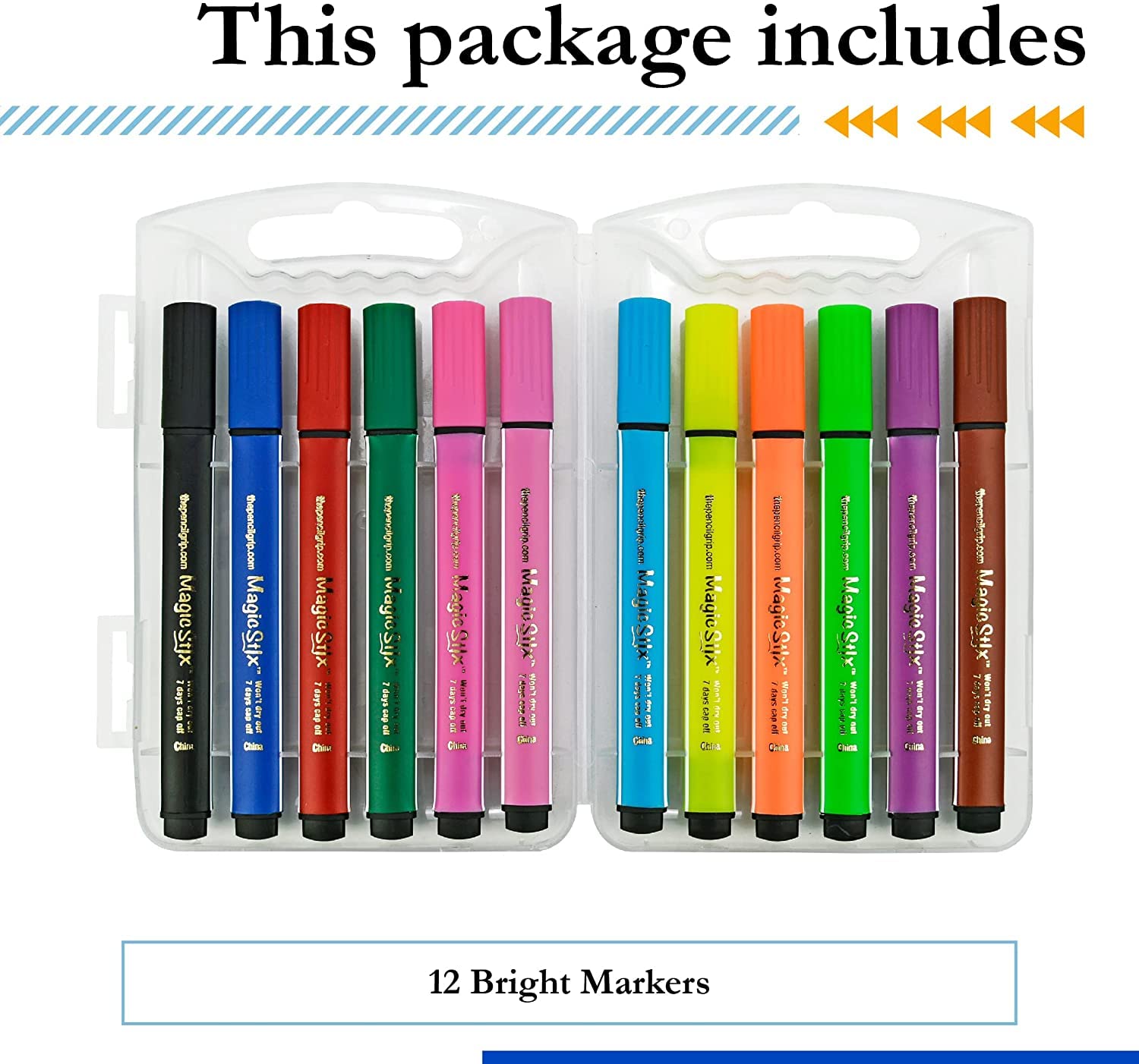 The Pencil Grip Magic Tri Stix Markers 12 colors TPG-395 (Six Pack)—