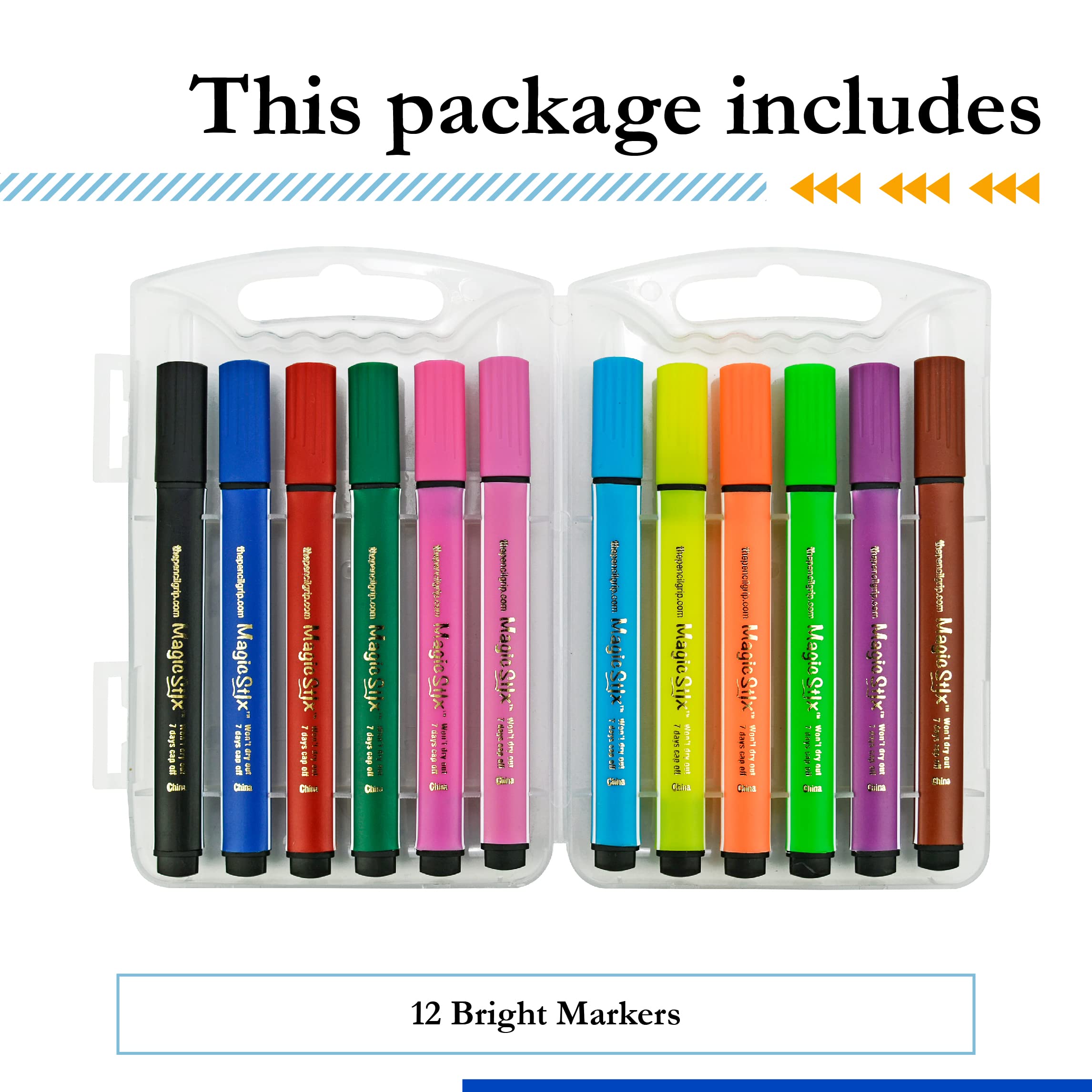 - Magic Stix Markers: The Pencil Grip triangular markers 12 set features vibrant application and long-lasting performance; Magic Stix markers are suitable for school, home, office use, and on the go!