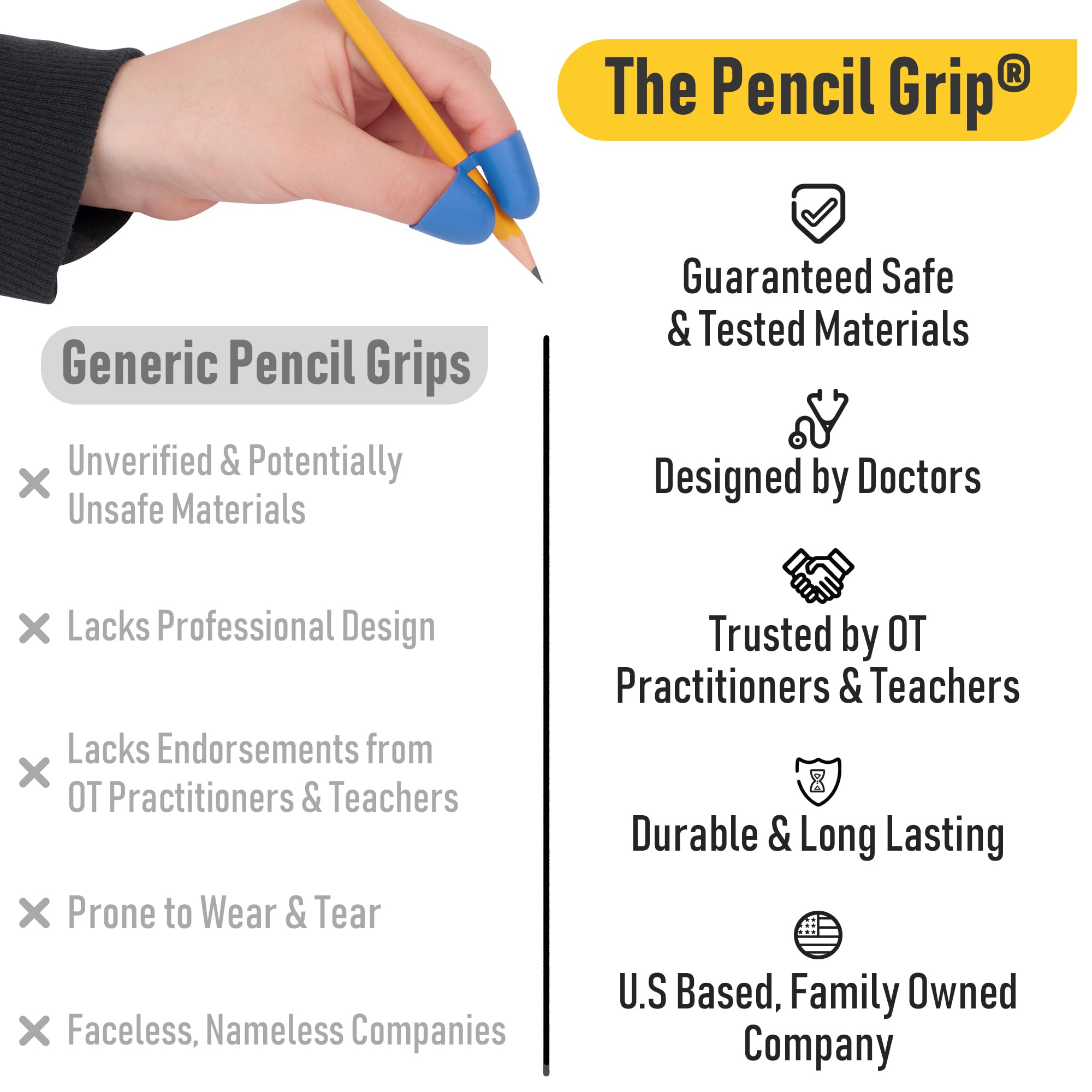 - Ergonomic Hand Grippers: The Pencil Grip fits on pencils, primary pencils, pens, crayons, markers, paint brushes, etc., so its benefits can be widely enjoyed.